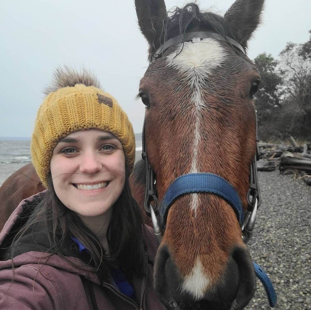 Tyanne has been indulging herself in equine sports since she was a young girl. Traveling to Hunter Jumper shows with her trusty steed Beamer and Frankie, they always knew how to brighten the days of those around them. Tyanne had many horses too love through her lifetime so far. She built relationships based on trust and respect with her equine partners, which in turn offered success in her showing career. Her current mount, Gretchen, is a mare trained in Dressage and Jumping; she LOVES her jump days. They have been building their relationship for 7 years now. You can see the love they have for one another through their playful nature. Great job, Tyanne! We are proud of the way you care for Gretchen with open and honest communication.