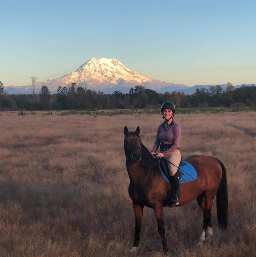 Congratulations Melinda Watterson! You have been selected as July's Rider of the Month!Melinda has held a passion for animals throughout her entire life. Her dedication to their health and well-being has resulted in a career path that continuously changes lives. She found a love for 3 Day Eventing and from that stemmed a relationship with her equine that will forever change her as a rider. Castletown aka Townes, is a big bay Thoroughbred. Melinda listens to his needs and is diligent about his care. She is dedicated to move forward as a team, making barn nights together very frequent for these two. Not only is Melinda a beautiful rider, she owns a mobile small animal veterinary service in the Spokane area! Melinda has received her Doctorate for Veterinary Medicine from Colorado State University. We have watched Melinda work with canines and felines in the area with comfort and an understanding of their needs. We have listened to clients of hers, hearing nothing but positive feedback. One client expressed immense gratitude for the care her dog received during his final moments. The job of an animal vet is challenging on many levels. We are grateful for all that Melinda has to offer our community through her work as a small animal veterinarian and her positive attitude at the shows and clinics. Thank you, Melinda, we are proud to have you in our community!
